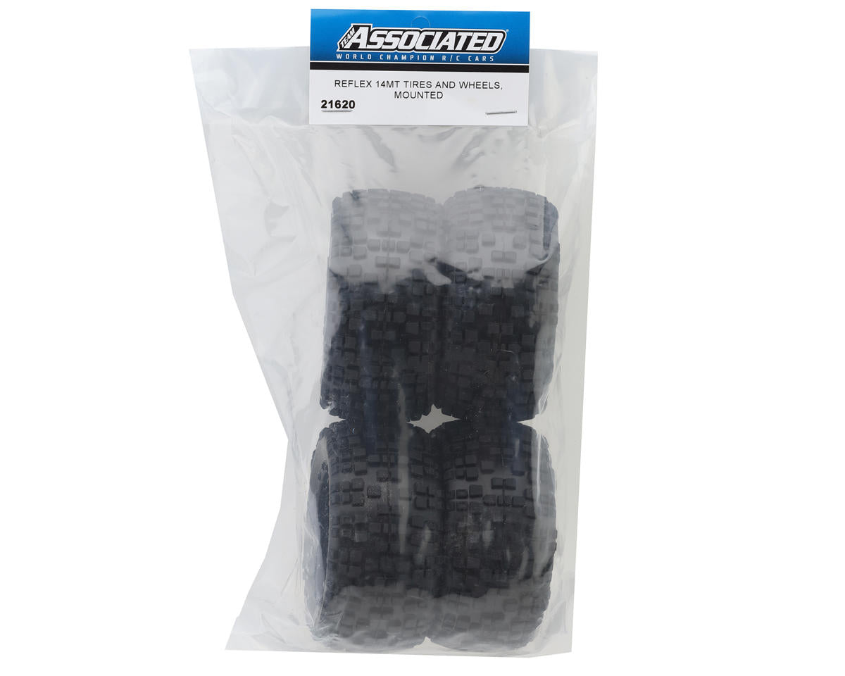 Team Associated Reflex 14MT 1/14 Monster Truck Pre-Mounted Tires. These replacement pre-mounted tires are intended for the Reflex 14MT 1/14 monster truck. Package includes four pre-mounted tires.