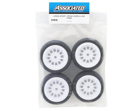 Team Associated Apex2 Sport ST550 Pre-Mounted Tires. This is a replacement intended for the Team Associated Apex2 Sport ST550. Package includes four pre-mounted wheels and tires.