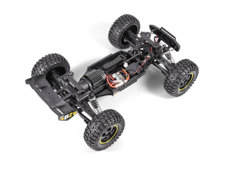 With its 4WD shaft drivetrain, independent double wishbone suspension, adjustable coilover shocks, and 4-Gear differentials in both the front and rear, the Smyter clambers over all kinds of terrain indoors and out, giving you all-out fun wherever you choose to drive! Plus, with its protective gear cover, servo saver, and splashproof electronics - you needn't worry about puddles or debris standing in your way!