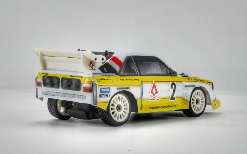 Just 214 examples of the 1:1 Sport Quattro were ever produced, but in collaboration with Audi, Carisma has secured the licensing rights to reproduce the car in slightly larger numbers, yet a more user friendly price point and size! Carisma's passion for all things motor sport and rally related shines right through with this new release, they spent a long time to recreate the body as accurately as possibly in a 1/24th version, and with its 8000kv Brushless power, Permanent 4WD, 2S LiPo compatibility and precise 2.4GHz FHSS Radio Gear, its the perfect gift for any true petrol head or purchase for Historic Rally enthusiasts globally.