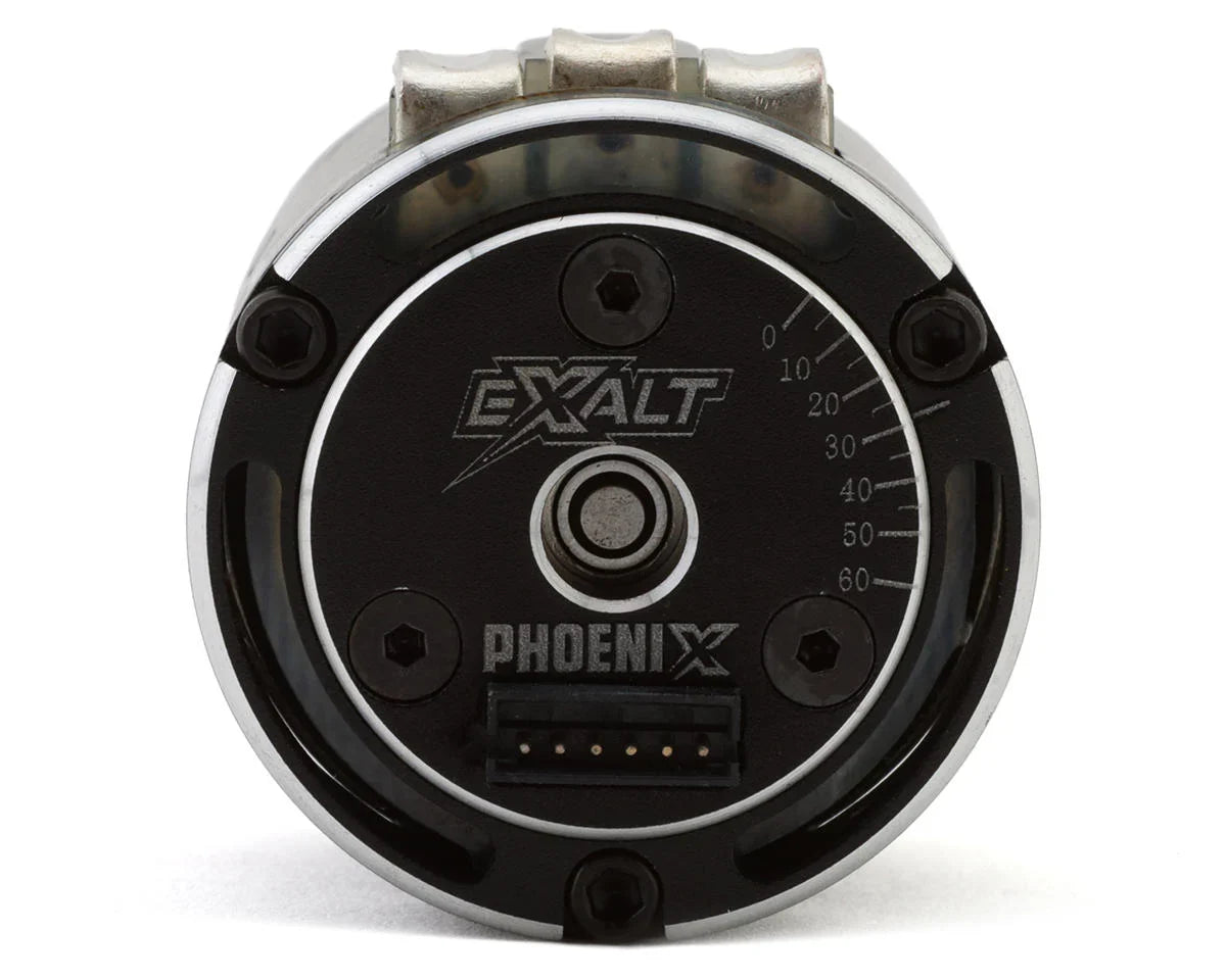 This is the Phoenix Silver Spec Brushless Motor from Team Exalt. Designed for competitive 1/10 scale racing, the Phoenix motor features a ground-up stator design prioritizing speed, durability, and efficiency. Its 7075 Aluminum CNC machined two-piece can design not only ensures durability but also adds a stylish touch with ample ventilation for effective heat dissipation.
