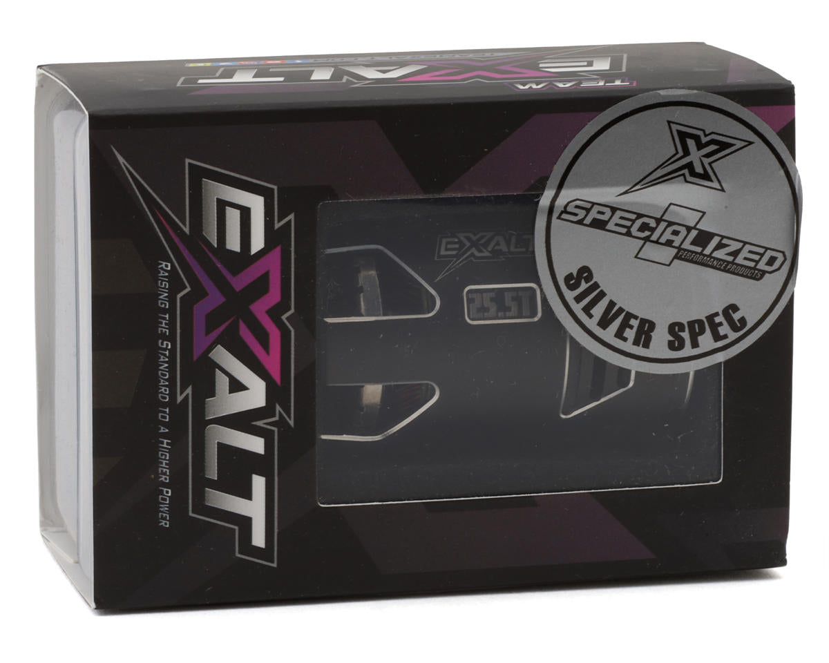 Silver Spec: This is a Production built motor that qualifies as a Top% Stator based on resistance measured from its batch. These motors include standard bearings and an unmeasured rotor installed and sealed from Team Exalt with a Silver Spec Seal.