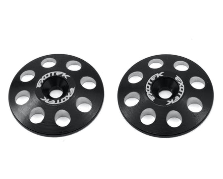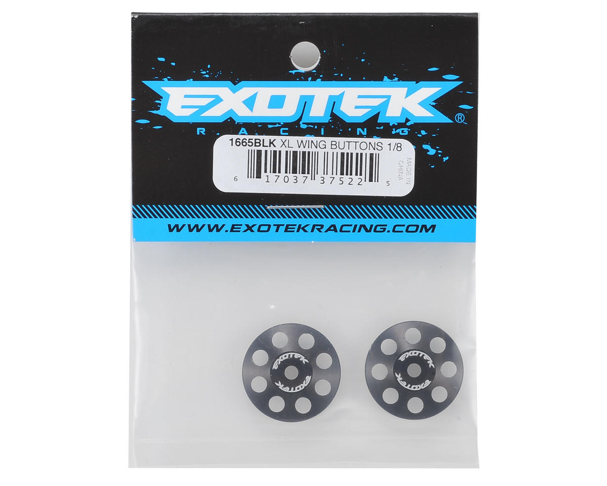 Exotek 22mm 1/8 XL Aluminum Wing Buttons are heavy duty, polished and anodized in a variety of colors to match your factory colors or paint scheme. The extra large 22mm diameter buttons are compatible with screw type wing mounts, and are thicker than 1/10 buttons, providing an incredibly secure hold on your wing and offering protection from crashes.