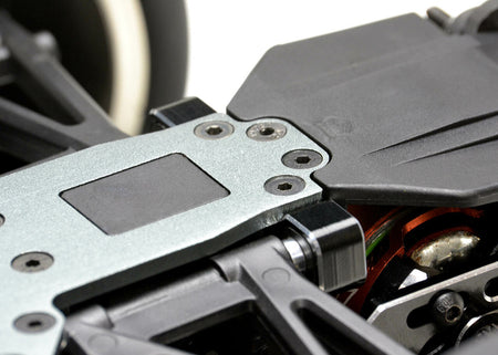 Heavy duty alloy suspension arm mounts with adjustable toe and anti squat for the Losi 22S Drag car.