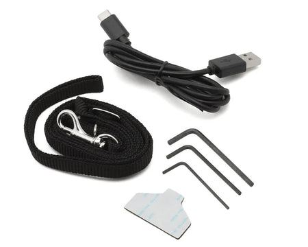 - (1) 2S (7.4V) LiPo Battery and USB cable for charging