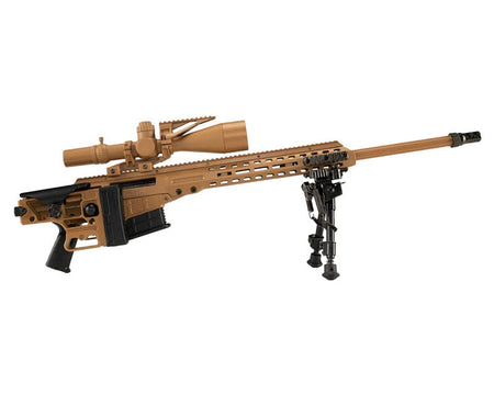 The Barrett MRAD (Multi-Role Adaptive Design), sometimes referred to as the Barrett MK22, is a modular, bolt-action sniper rifle designed by Barrett. Introduced in the early 2010s, it offers a high degree of adaptability, allowing users to change calibers and configurations to suit various mission requirements. Chambered for various cartridges, including the .338 and .300, it is favored by military and law enforcement snipers for its accuracy and versatility. The Barrett MRAD's legacy includes its innovative design and its role in modernizing bolt-action sniper rifles for long-range precision.