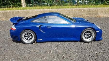 The Porsche 911 turbo (996) Body is a 200mm wide body will fit wide 1/10 scale touring cars and features the usual HPI attention to detail. The 996 style Porsche 911 turbo was the first 911 turbo of the "water-cooled" era for Porsche, and the 911 turbo remains one of the iconic supercars by which all other high performance cars are measured.