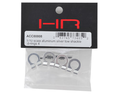 Hot Racing 1/10 Aluminum Tow Shackle D-Rings are a heavy duty machined aluminum D-Ring option for any custom crawler project. They look awesome, and will hold up to abuse better than standard cast metal d-rings.