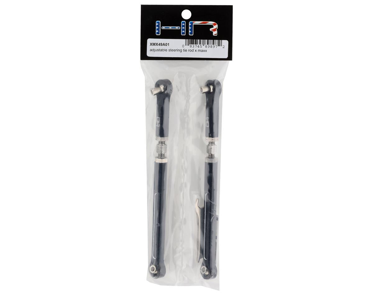 Hot Racing Traxxas X-Maxx Adjustable Steering Links. These optional turnbuckles allow you to accurately adjust your toe from 150-166mm. Made from CNC machined aluminum, these are a perfect fit for the Traxxas X-Maxx 6S or 8S. Package includes two steering links and one wrench.