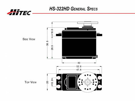 The HS-322HD Standard Heavy Duty Servo utilizes Hitec's revolutionary Karbonite gear train which is four times stronger than our standard white nylon gears, and even after hundreds of thousands of cycles they don't show any signs of wear. Karbonite gears and our custom IC make the HS-322HD a great choice for an economical sport servo.