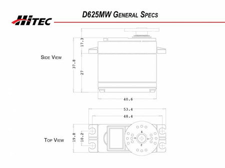 The metal D-625MW is part of our D-Series dynamo servo line. All Hitec D-Series servos have been designed using Hitec's cutting edge, custom engineering. Combining industry leading high-resolution, state-of-the-art ultra-response technology with a 32-bit MCU and 12-bit ADC for unprecedented programmability and flexibility, these servos deliver significantly smoother movement. The speedy, powerful line operates on a wide 4.8 ~ 8.4 voltage range, allowing use with any common battery chemistry without the need for adapters or regulators. Featuring Hitec's industry standard 25-tooth output spline with 3mm hex screw, each D-Series servo brings monster performance never known before in the market.