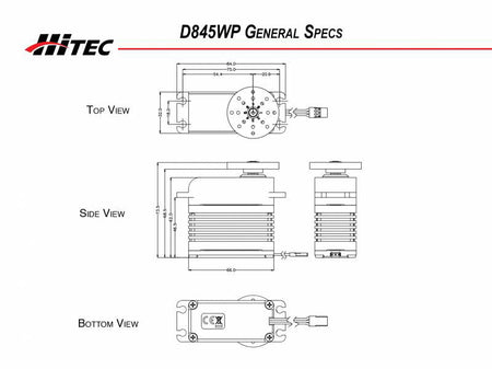 The steel D-845WP is part of Hitec's D-Series dynamo servo line. All Hitec D-Series servos have been designed using their cutting edge, custom engineering. Combining industry leading high-resolution, state-of-the-art ultra-response technology with a 32-bit MCU and 12-bit ADC for unprecedented programmability and flexibility, these servos deliver significantly smoother movement. The speedy, powerful line operates on a wide 4.8 ~ 8.4 voltage range, allowing use with any common battery chemistry without the need for adapters or regulators. Featuring Hitec's industry standard 25-tooth output spline with 3mm hex screw, each D-Series servo brings monster performance never known before in the market.