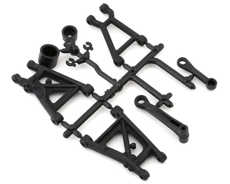 Kyosho Fazer Mk2 FZ02 TC Front Suspension Arms Set. This replacement set is intended for the Kyosho Fazer Mk2 FZ02 TC (Touring Car) platforms. Package includes two front lower suspension arms, one upper suspension arm, one steering link, one rear camber link and spacers.