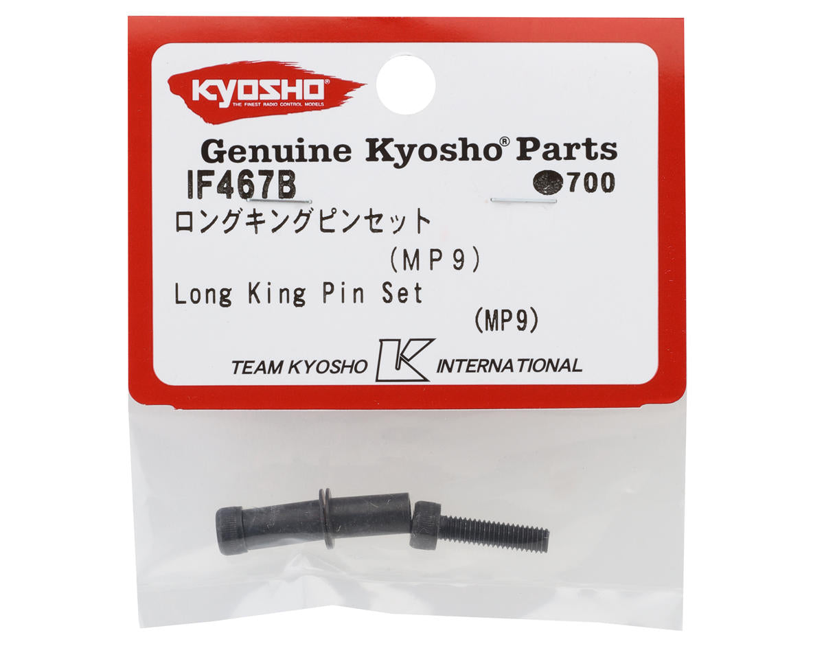 Kyosho MP9 Long King Pin. These replacement kink pins and screws are intended for the Kyosho MP9 and MP10 platforms. Package includes two king pins and two screws.