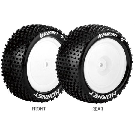Louise R/C E-Hornet 1/10 4WD Rear Buggy Tire, Soft, Mounted on White LT3172SWKR