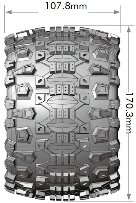 The tire with MFT technology is usually a bit heavier and larger in size then normal tires without the MFT technology. We recommend to check your gear ratio and adjust if needed. We also recommend to update your steering servo as these tires provide more grip and may overload a standard servo.