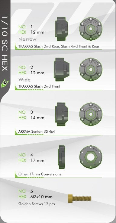 - Removable 1-10 SC Hex - 12, 14, 17mm