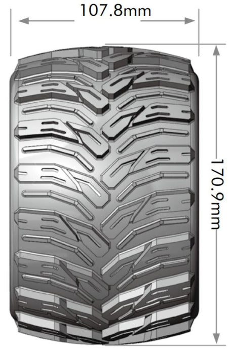 The tire with MFT technology is usually a bit heavier and larger in size then normal tires without the MFT technology. We recommend to check your gear ratio and adjust if needed. We also recommend to update your steering servo as these tires provide more grip and may overload a standard servo.