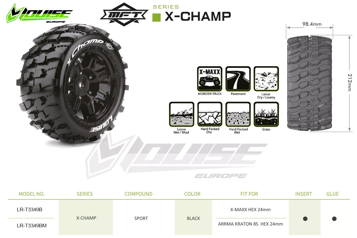 Louise R/C MFT X-Champ X-MAXX XRT Sport Monster Truck Tires, 24mm Hex, (2) LT3349B