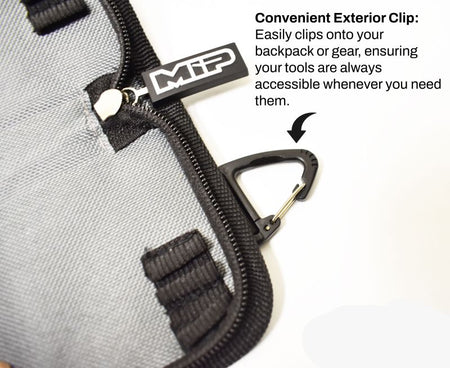 Introducing the #5211 - MIP 7-Inch, 13 Pocket Speed Tip Tool Bag, a compact and versatile Trail Kit designed for RC enthusiasts who need quick access to essential tools on the go. Perfect for outdoor adventures, this tool bag features a convenient exterior clip that allows you to easily attach it to your backpack or gear, ensuring your tools are always within reach.