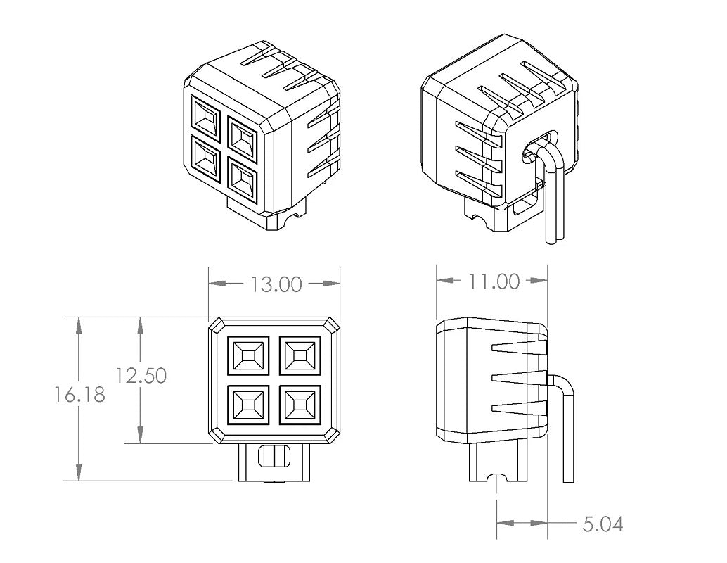 The S1 Light Pods feature cleverly designed Faceted Lenses which do more than just look cool - they use Prismatic Features to maximize the light from a 3mm LED. The water-clear prisms split the narrow viewing angle of 3mm LED into a starburst of reflections that more evenly spread the light. 3mm LEDs might not have the shining power of some of our other LEDs, but for Accent Lights, Ditch Lights, Tail Brake Pods, and Rock Lights, the S1 Light Pods are hard to beat.