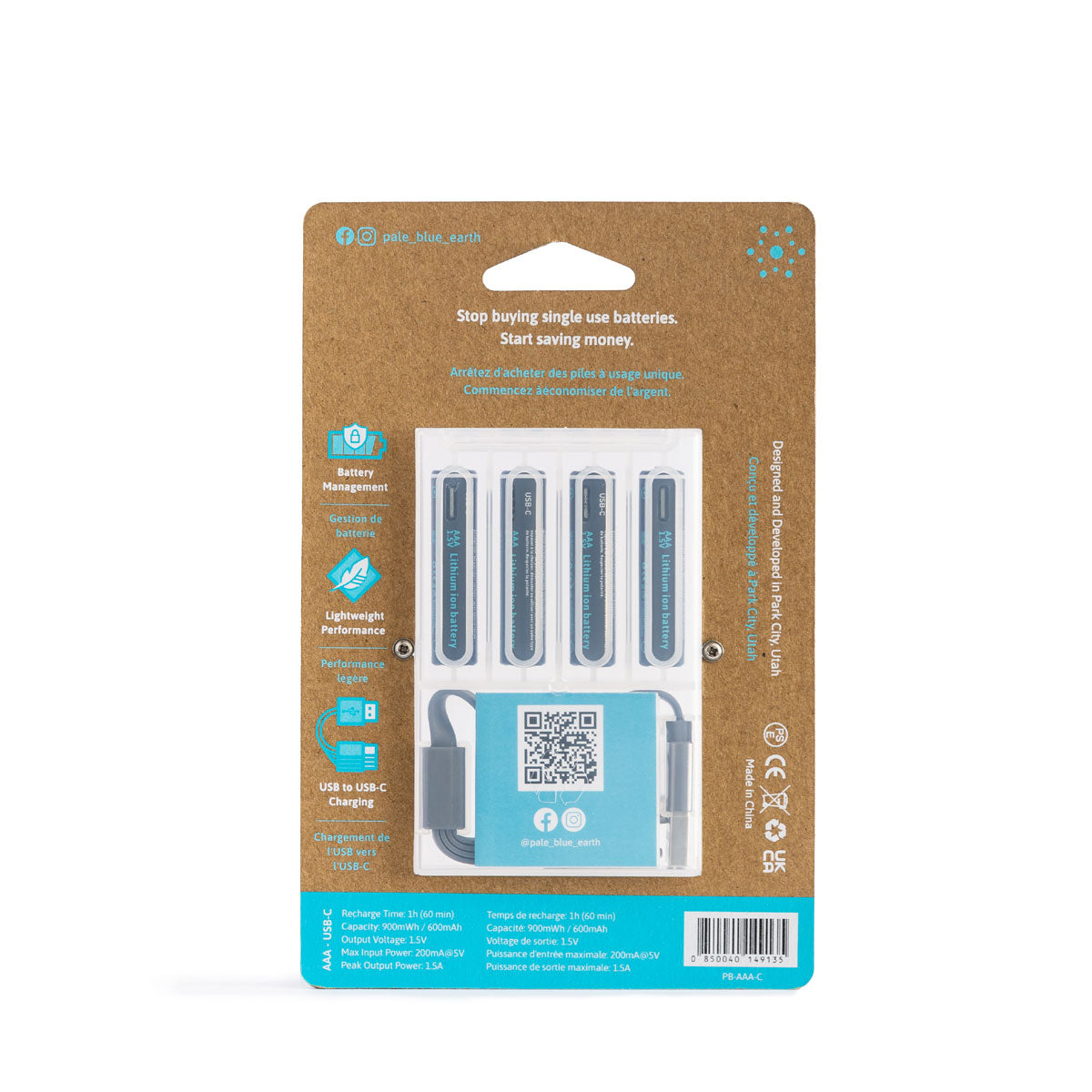 Pale Blue Earth Pale Blue Lithium Ion Rechargeable AAA Batteries 4pk