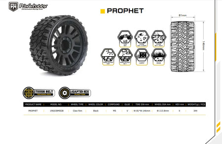 Power Hobby 1/8 MT 4.0 Prophet Belted Mounted Low Profile Tires Removable Hex (2) 1902CBMSGB