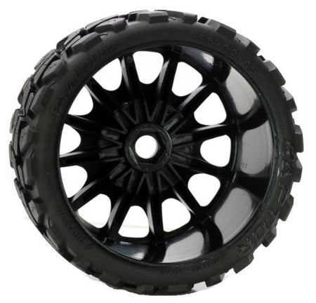 Powerhobby Raptor Belted Monster Truck Wheels/Tires (pr.) Pre-mounted Sport Medium Compound 17mm Hex