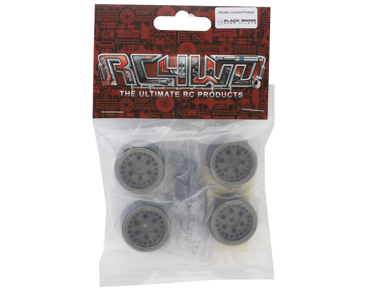 RC4WD Black Rhino Ouray 1.0" Aluminum Beadlock Wheels. These officially licensed Black Rhino Wheels are CNC machined, billet aluminum, deep dish wheels that offer an incredible scale touch to your build. Unlike other aluminum offerings, these awesome crawler wheels are sold in packs of four and include RC4WD scale bolts to finish off the look!