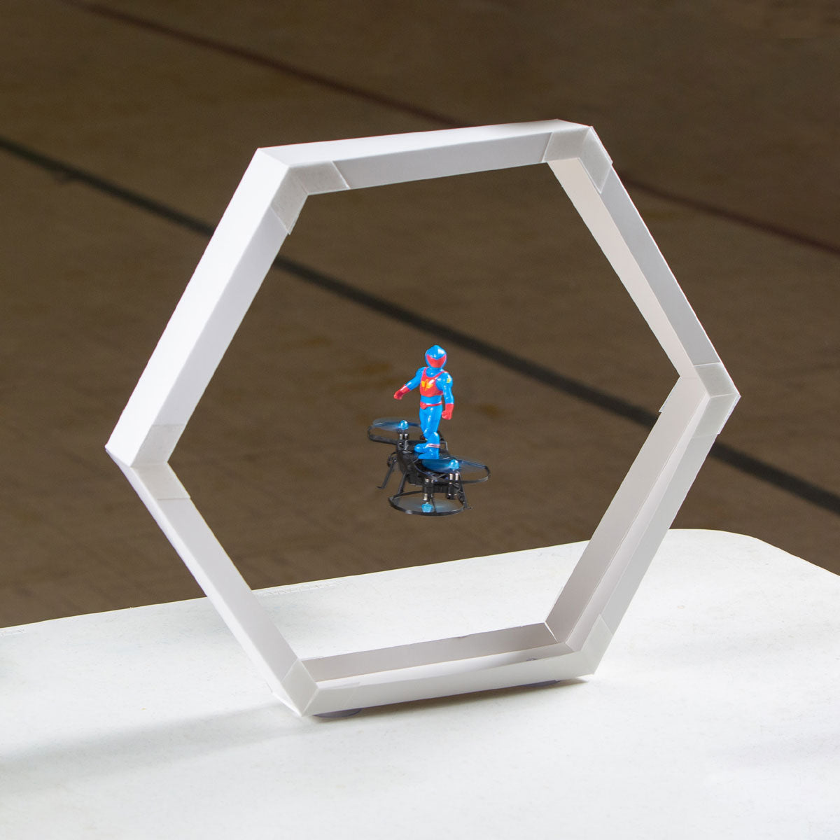 The AeroBoard features a 380mAh removable flight battery for flights of up to 7 minutes. By adding extra batteries, you don't need to wait for the unit to recharge to continue flying. For even more fun, purchase a set of lightweight hoops (sold separately). With the hoops you can create obstacle courses test your flying skills or make it a competition with your friends! Because the AeroBoard is an RTF (Ready-To-Fly) aircraft, it arrives factory-assembled with everything needed to experience the fun of indoor micro RC flight, or outside in light wind. A sticker sheet is included so you can customize your pilot's look. The AeroBoard also includes a 2.4GHz 4-channel transmitter (with sticks and buttons that match the color of your pilot), and a USB charger for the flight battery. Just add 3 AAA batteries to the transmitter and you can be testing your flying skills around the house or in your back yard within minutes of opening the box.