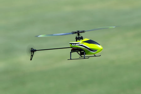 The Volitar is an RTF (Ready-To-Fly) aircraft, so it arrives factory-assembled with everything needed to experience the fun of flying a RC heli, like a 2.4GHz 4-channel transmitter, a USB charger for the included flight battery, and even an extra set of rotor blades. The attractive canopy even comes pre-painted with decals applied and the rotor blades are already painted in matching colors. All you need to add is four AA batteries for the transmitter and you'll be experiencing the ease and fun of flying this new micro heli shortly after opening the box!