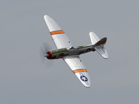 The Rage RC Micro P-47 Thunderbolt is classic WWII semi-scale park flyer with the stability needed for beginners to learn how to fly and the necessary power to provide a fun flying experience for RC enthusiasts. The P-47 is manufactured from durable EPP foam and the detachable prop system adds to the durability by nearly eliminating broken props and bent motor shafts. Like most Rage RC airplanes, the P-47 includes the PASS (Pilot Assist Stability Software) system which allows the performance envelope of the airplane to expand with your flying skills and makes flying a more enjoyable experience. With PASS, in Full or Partial Assist Mode, if you ever lose control, simply release the control sticks and the plane will quickly return to level flight. Even when in Expert Mode, if you get into trouble, all you need to do is move the PASS switch on the transmitter to Full or Partial Assist for the system to take over and you're back in level, stable flight. Another option included with the P-47 is the removable snap-in-place landing gear that can be used for take-offs from smooth surfaces. When hand-launching is a better option for conditions, using Partial Assist makes it a breeze whether the gear is installed, or not. For added fun when flying with the PASS system, you can use the Stunt button on the transmitter to automatically enable the P-47 to complete either a loop or roll that will make you look like an ace pilot.