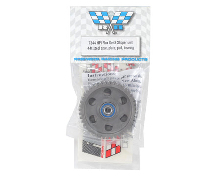 This is an optional Robinson Racing Gen3 Hi Performance Slipper Kit, and is intended for use with the HPI Savage FLUX Monster Truck. Robinson Racing GEN3 Slipper Units are over-engineered to meet the punishing demands of the most powerful brushless motor systems! GEN3 Slipper Units will not fail under the enormous load conditions of today’s brushless motor systems. The new GEN3 Slipper Unit is a captured design to prevent slipper pad blowout and deliver maximum power to the ground. The hi-performance hardened steel spur gear will not fail or strip. Aircraft grade billet aluminum backplate will not bend or break. Increased surface area of the oversized pad insures dependable performance. Less total parts reduces flex and wobble in the spur gear and slipper unit. Bearing included.