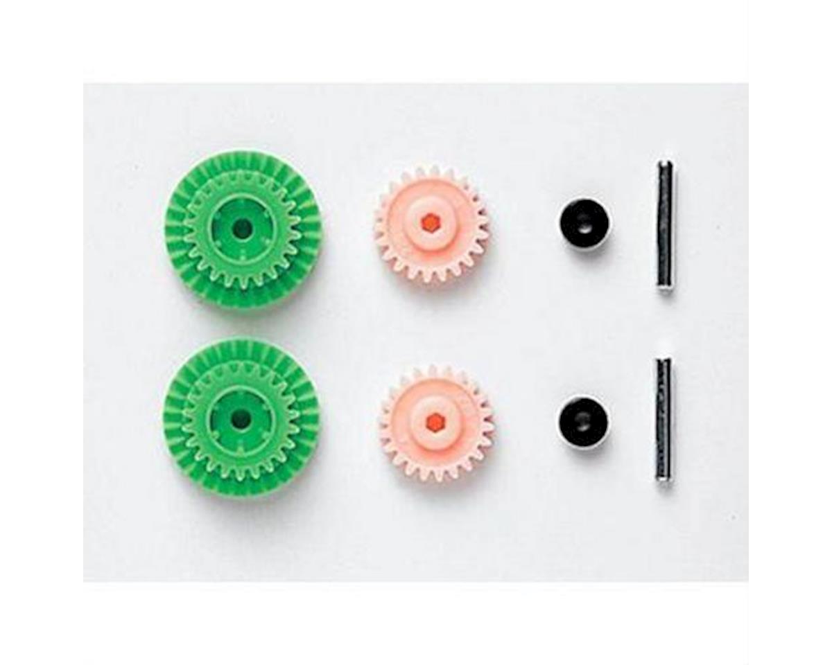 Super fast 3.5:1 ratio gear included with touring car style Mini 4WD Pro racers is also available as a Grade-Up parts set. Adding this gear set allows you to kick your machines speed up to the next level, giving it the ability to demolish the competition!