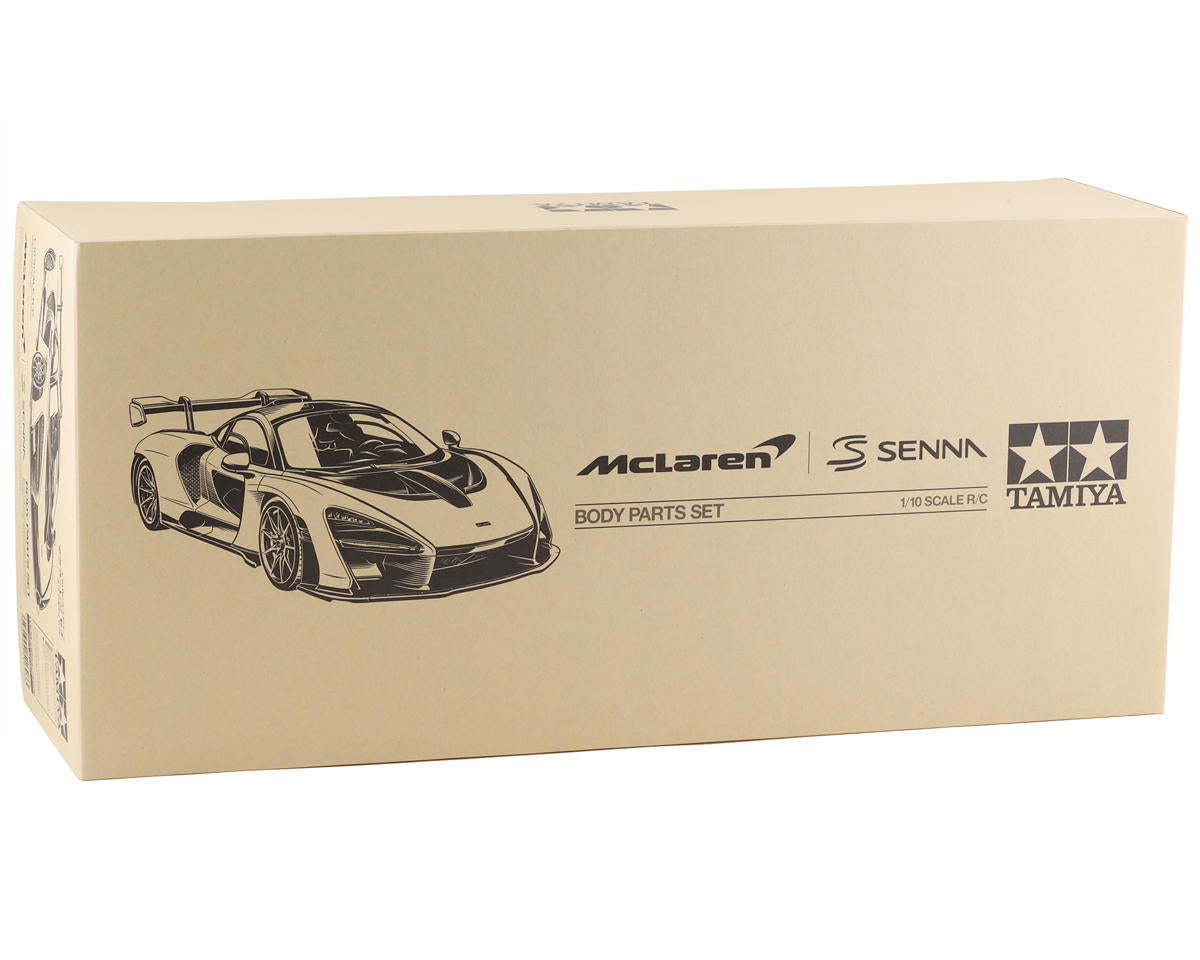 Tamiya McLaren Senna Body with Parts Set. Constructed from durable polycarbonate this detailed recreation of the McLaren Senna brings this iconic vehicle to life. Adding to this are PC-ABS plastic mirrors and wing parts giving the ultimate in scale details.