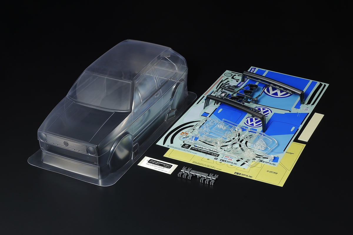 This body parts set recreates the Volkswagen Golf II GTI 16V Rally. It is made of polycarbonate with detail pieces made of PC-ABS plastic.