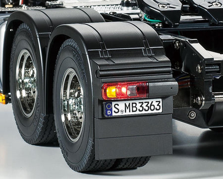 The Tamiya 1/14 Mercedes-Benz Actros 3363 Semi Kit scale tractor truck recreates the 3-axle truck, which is the first narrow bodied European tractor model in the Tamiya Tractor Truck Series. Tamiya has faithfully recreated the truck's modern form with the use of ABS molded body parts and a number of metal chassis components. The chassis is built for durability as it uses aluminum side channels with resin cross members. A front motor powers a three-speed transmission leading to built in differentials. This drivetrain allows for smooth power transfer and cornering.