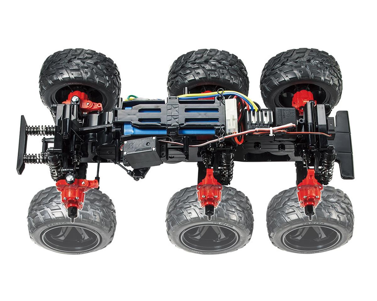 The Tamiya Dynahead 6x6 G6-01TR 1/18 Monster Truck Kit takes inspiration from the big trucks used in grueling off-road world of truck trials. The sleek body appears on the G6-01TR chassis, which is based upon the G6-01, with hub reduction axles providing extra height for taking on rougher terrain.