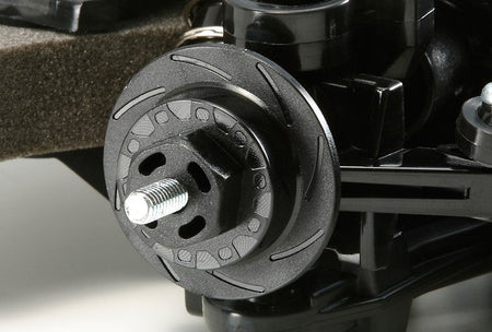 The adaptable, balanced shaft driven 4WD TT-02 chassis employs a longitudinal layout with the battery on the left and the motor on the right, to give excellent stability. In addition, it features identical left and right suspension arms and uprights for ease of assembly, plus easy-to-maintain gearboxes. It is a highly adaptable chassis, as it offers 2 different wheelbases, 2 ground clearance settings and 2 tread set-ups in addition to a range of 10 possible gear ratios. It is not short on looks either, with brake disc-shaped wheel hubs and stylish front bumper supports.